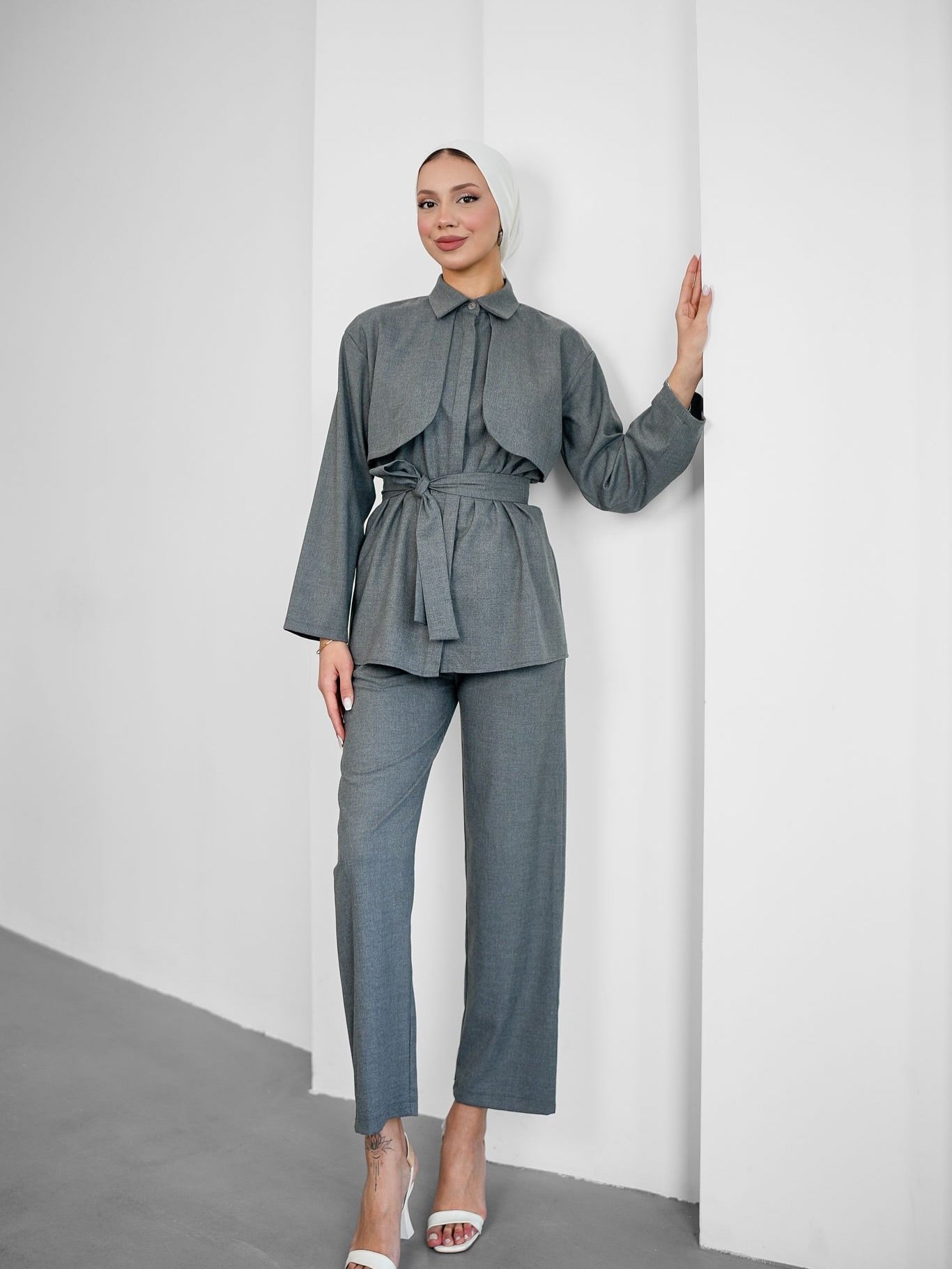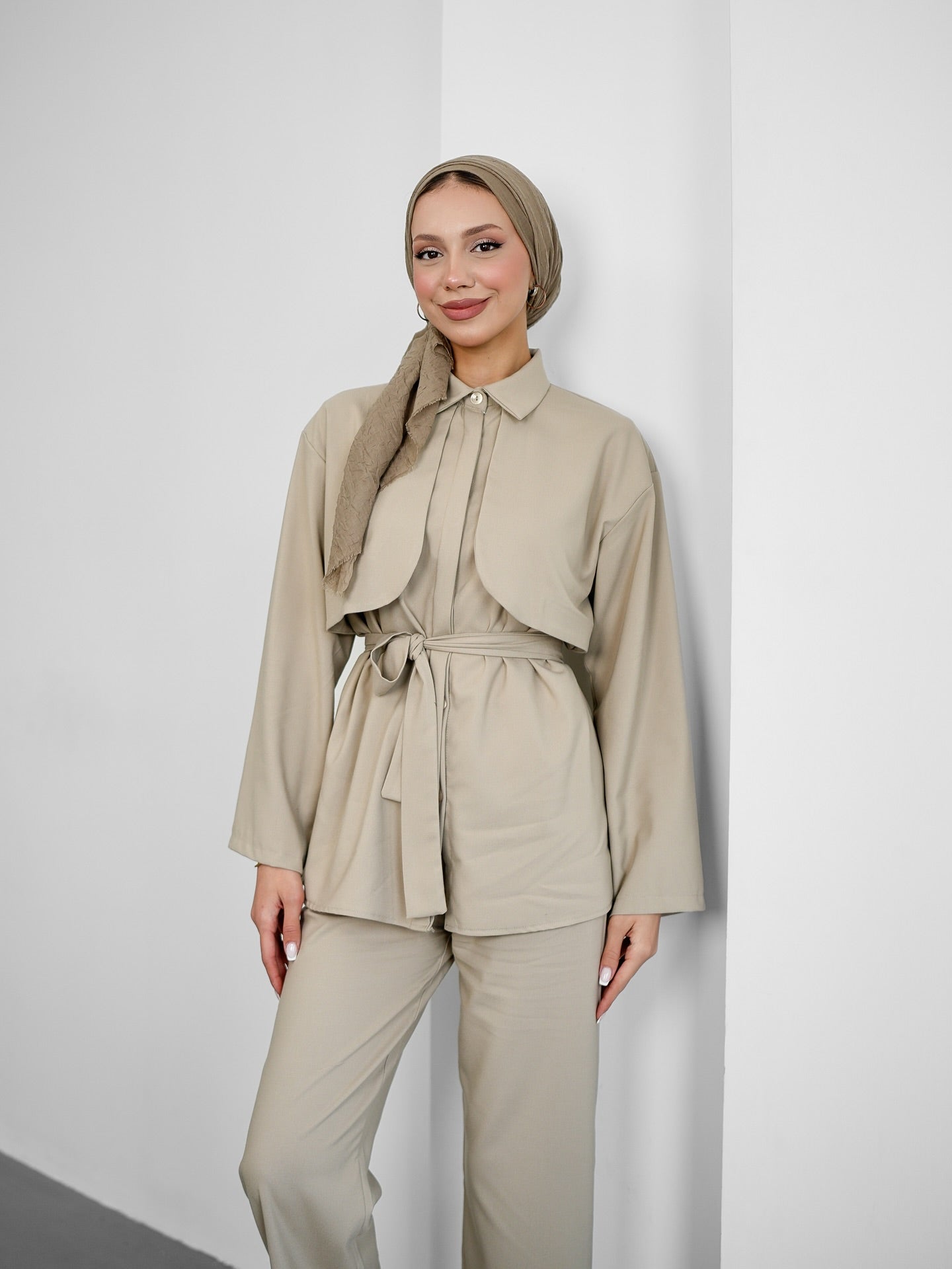 Découvrez notre ensemble modeste femme 2 pièces, composé d’une tunique structurée avec ceinture et d’un pantalon assorti. Une tenue pensée pour allier pudeur, modernité et raffinement, idéale pour la femme élégante qui recherche un style chic et intemporel.